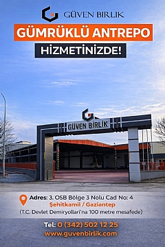 GÜVEN BİRLİK GÜMRÜKLÜ ANTREPO GAZİANTEP BAŞPINAR 3. Org. San. Böl.´de HİZMETİNİZDE !